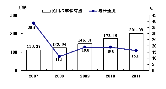 图7:2007—2011年全省民用汽车保有量及其增长速度